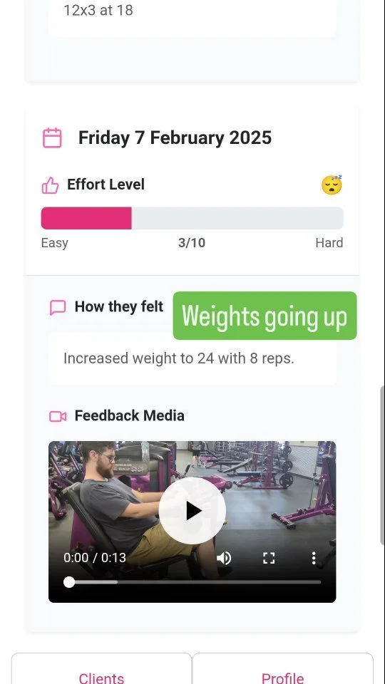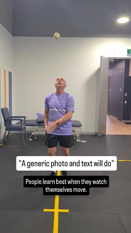 Film the exact exercise you want your client to do with specific verbal cues. Clients can accurately replicate at home and add effort and feedback to track progress.